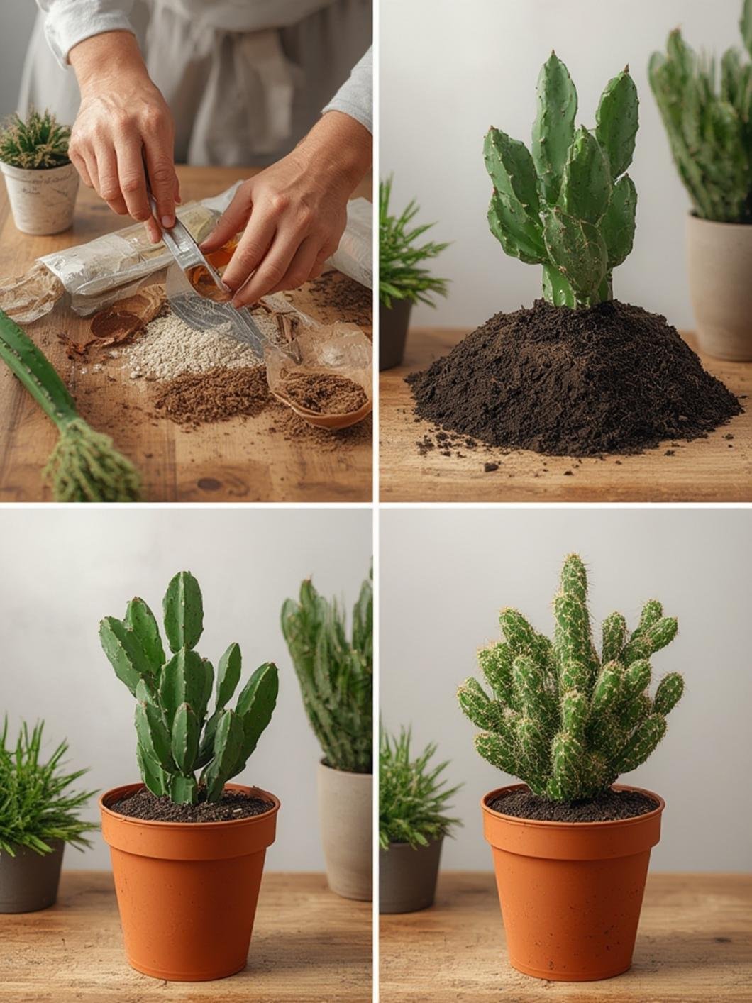 1. Sustrato especializado: Mezcla comercial para cactus o suculentas (contiene arena gruesa, piedra pómez y materia orgánica limitada).