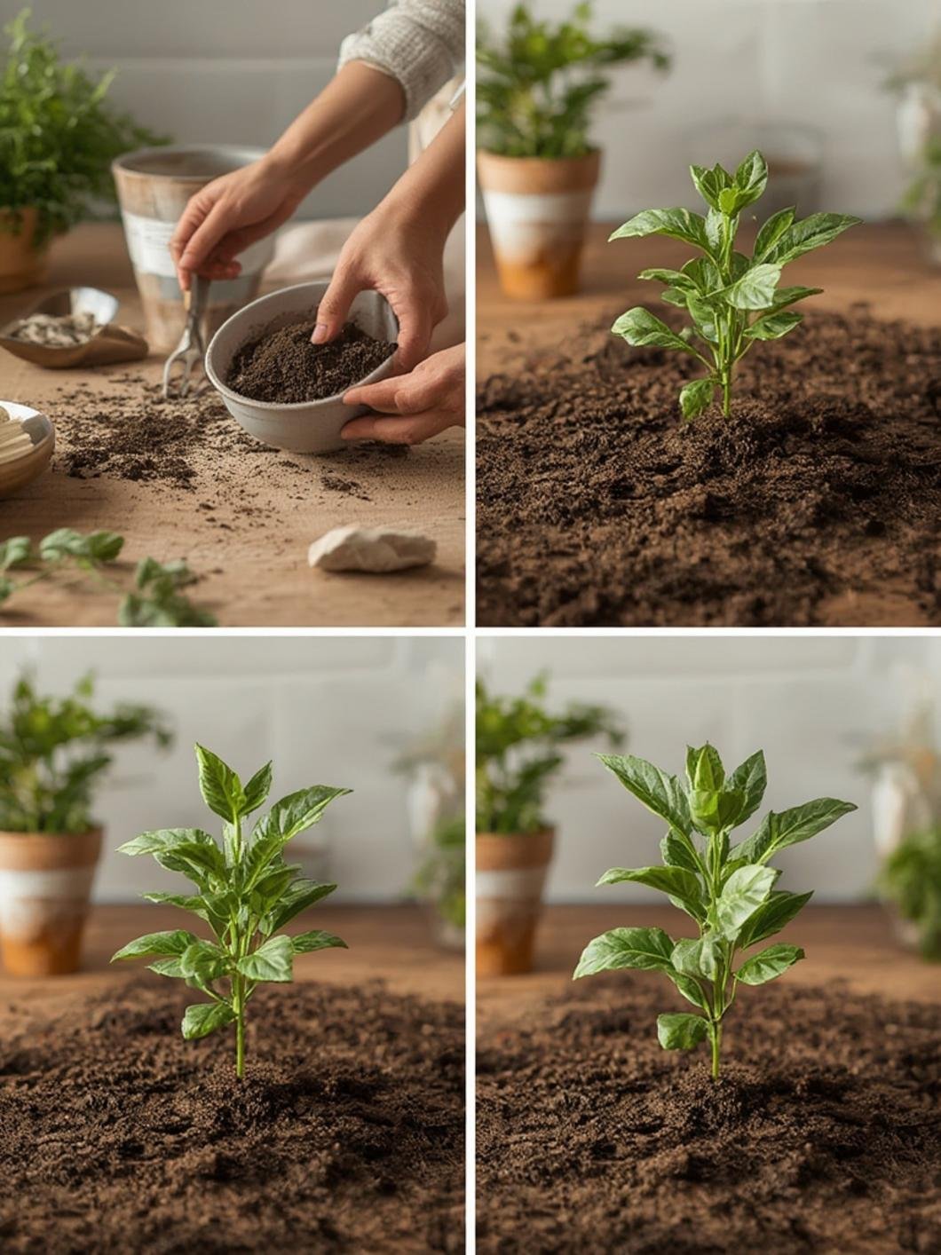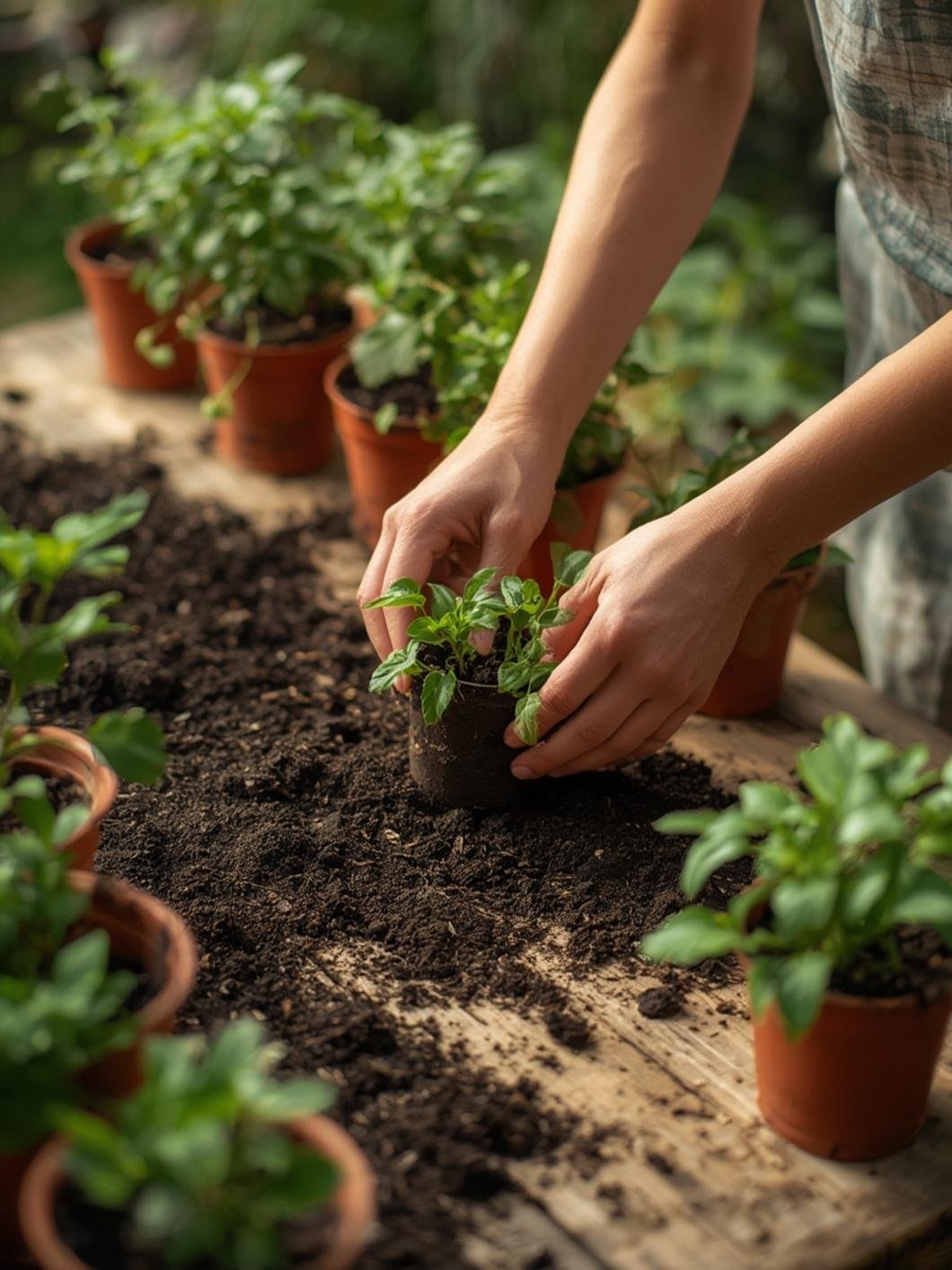 - Preparación: 1-2 horas (selección de plantas, mezcla de sustrato).